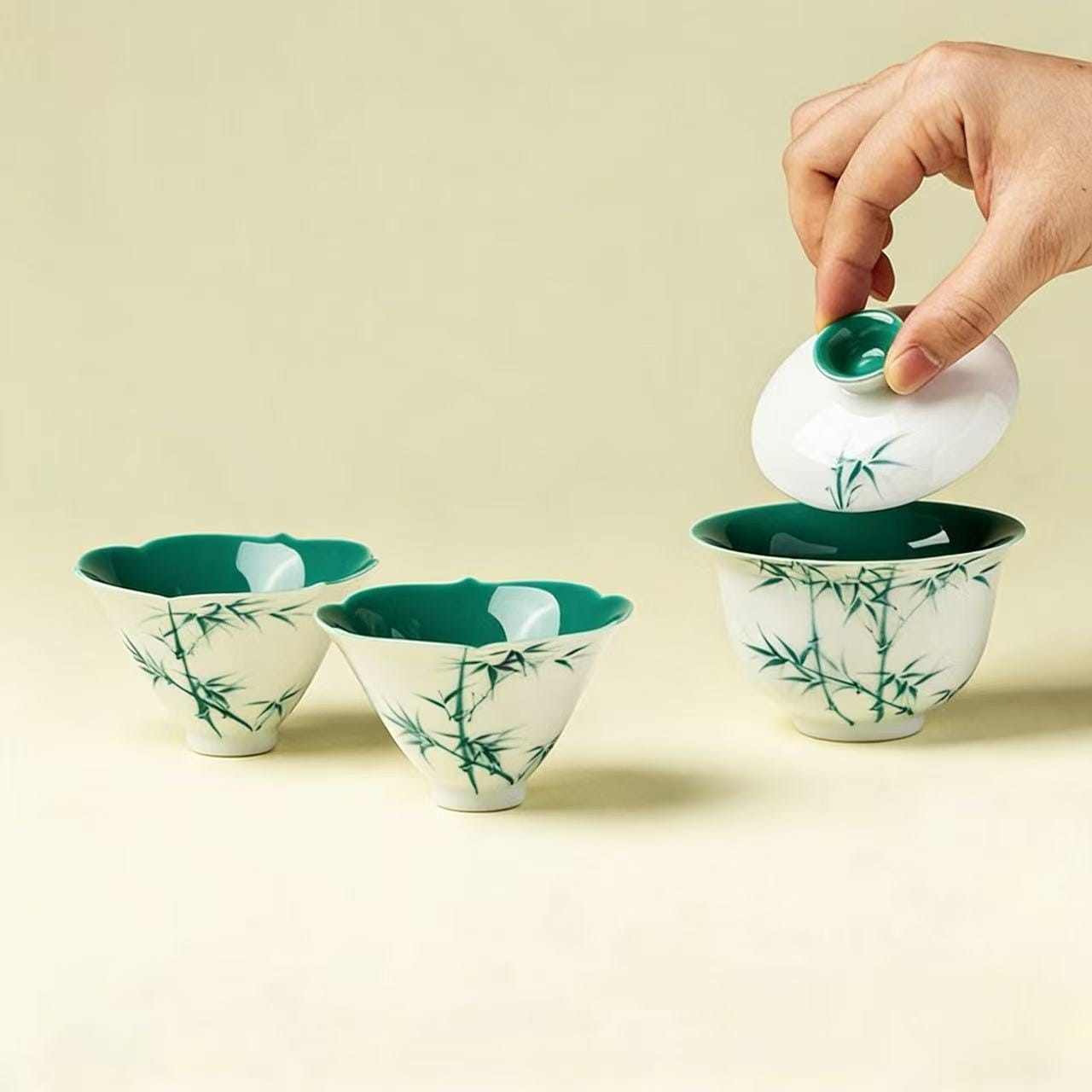 Hand Painted Bamboo Gaiwan Set – Exquisite 5-Piece Porcelain Collection for Gongfu