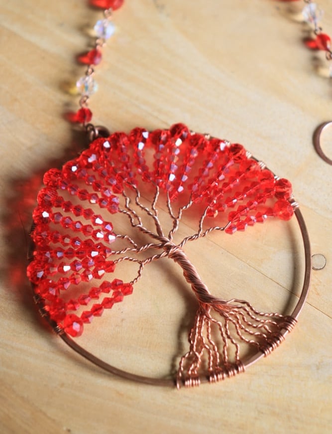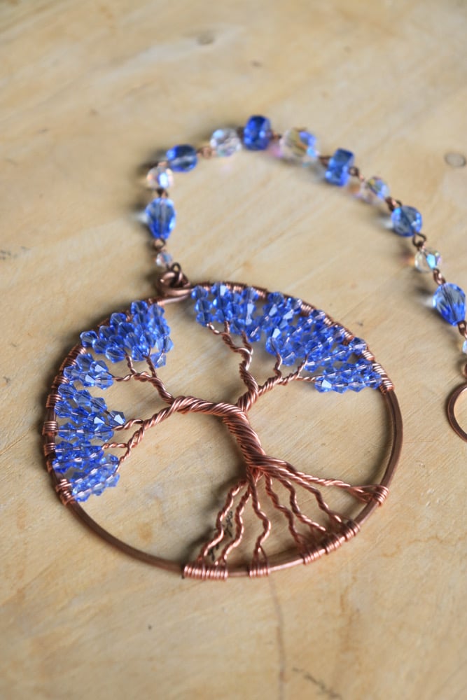 Light Blue Glass Beaded Tree of Life Suncatcher