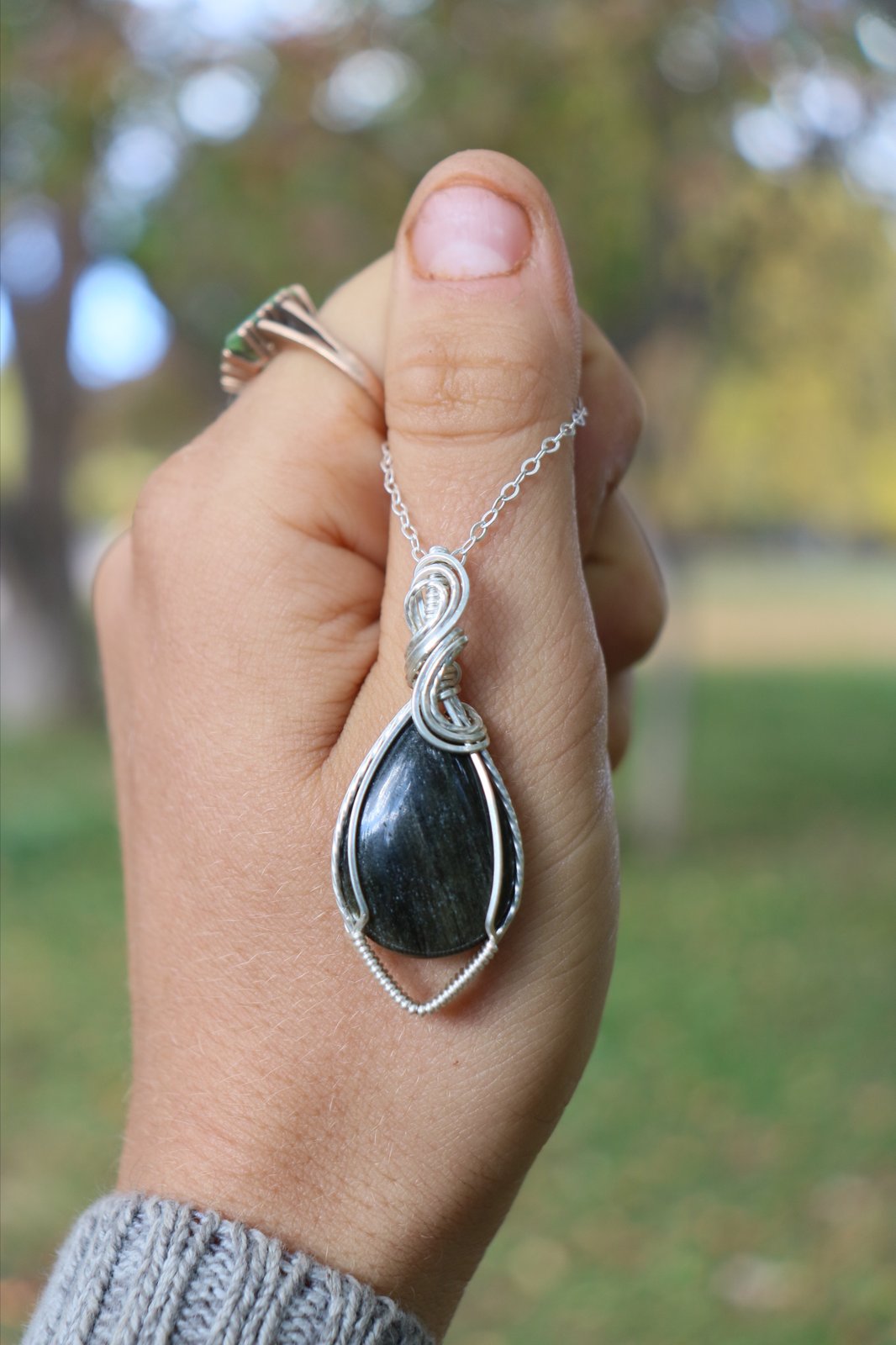 Golden Obsidian Silver Pendant #2