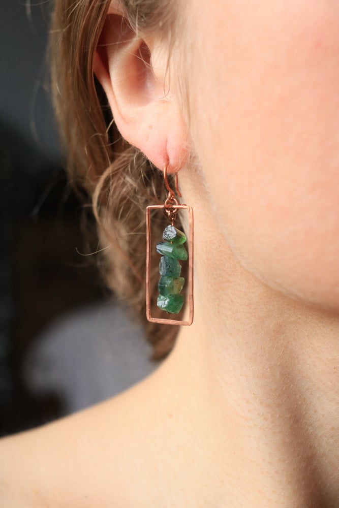 Raw Green Tourmaline Rectangular Earrings