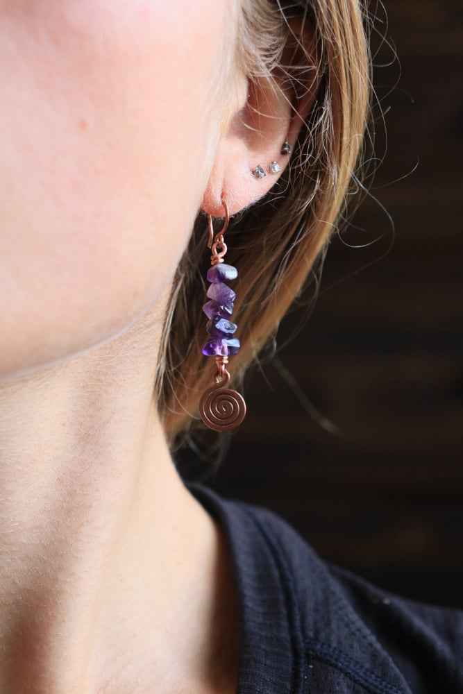Copper x Spiral Amethyst Earrings