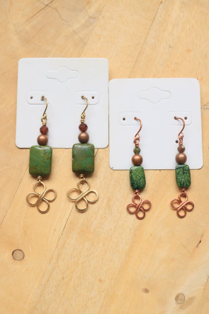Copper Clover Malachite Earrings