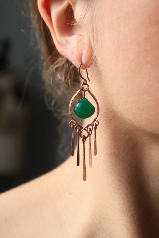 Copper Green Onyx Fringe Earrings