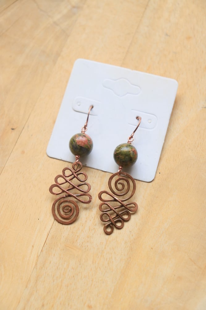 Asymmetrical Copper Unakite Earrings