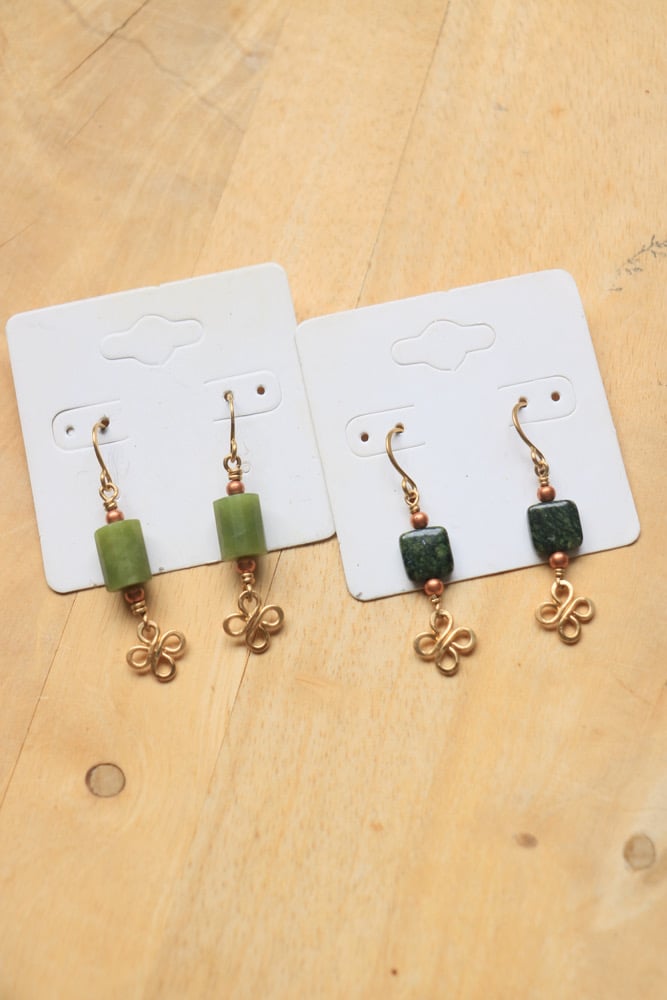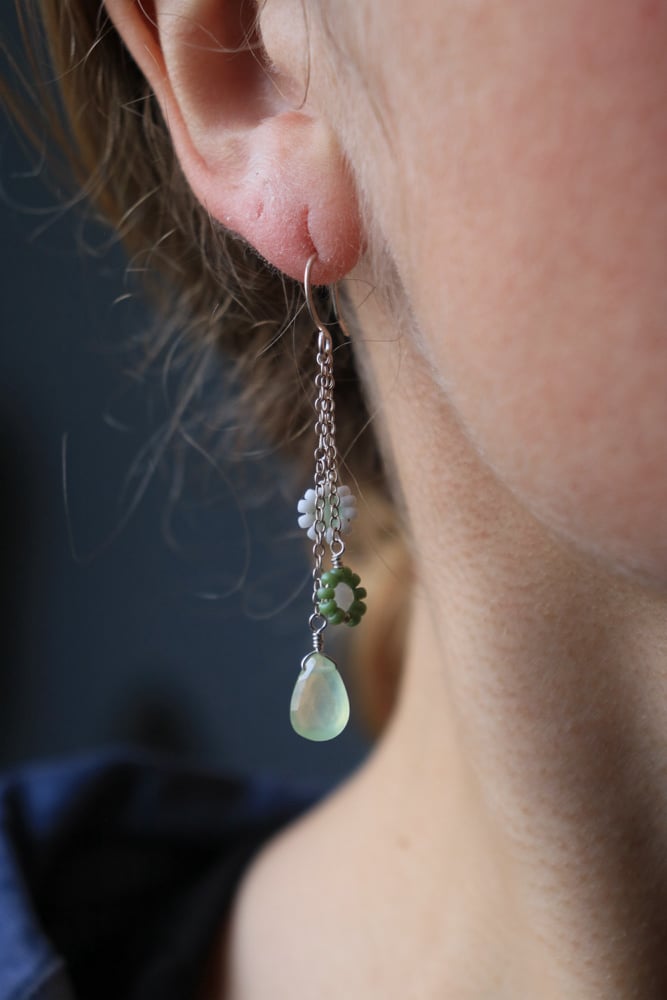 Prehnite and Chrysoprase Mixed Metal Fringe Earrings