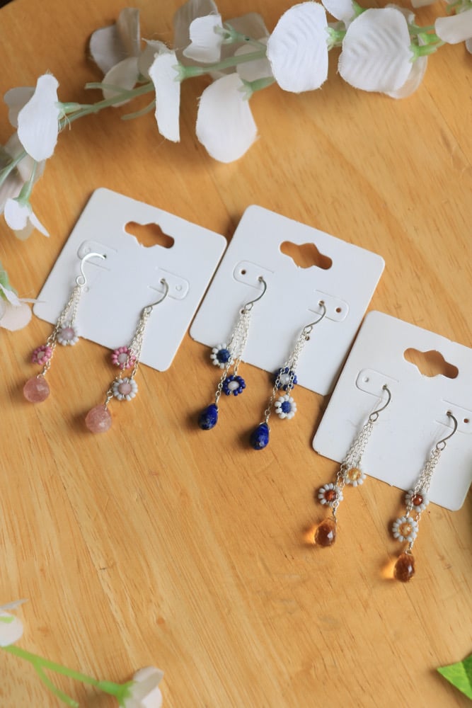 Green Tourmaline Mixed Metal Fringe Earrings #1