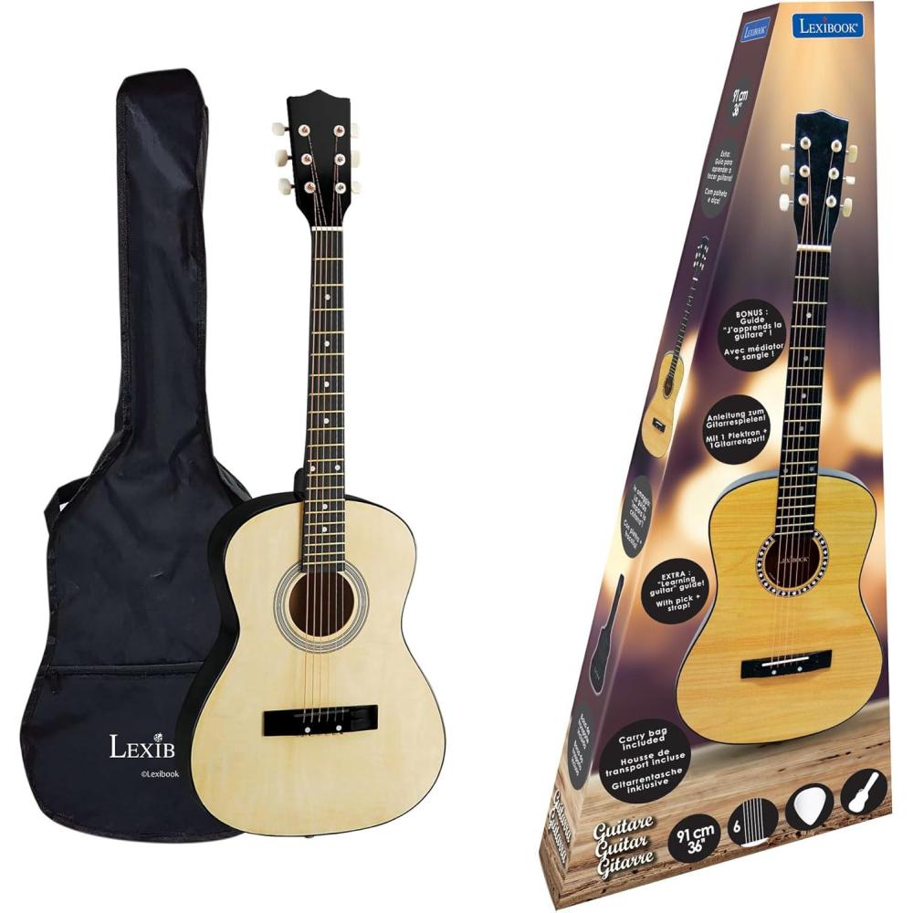 Lexibook – Acoustic Guitar, 36″, Learning Guide, 6 Nylon Strings, Carrying Case Included, Wood/Black, K2200(Lexibook)